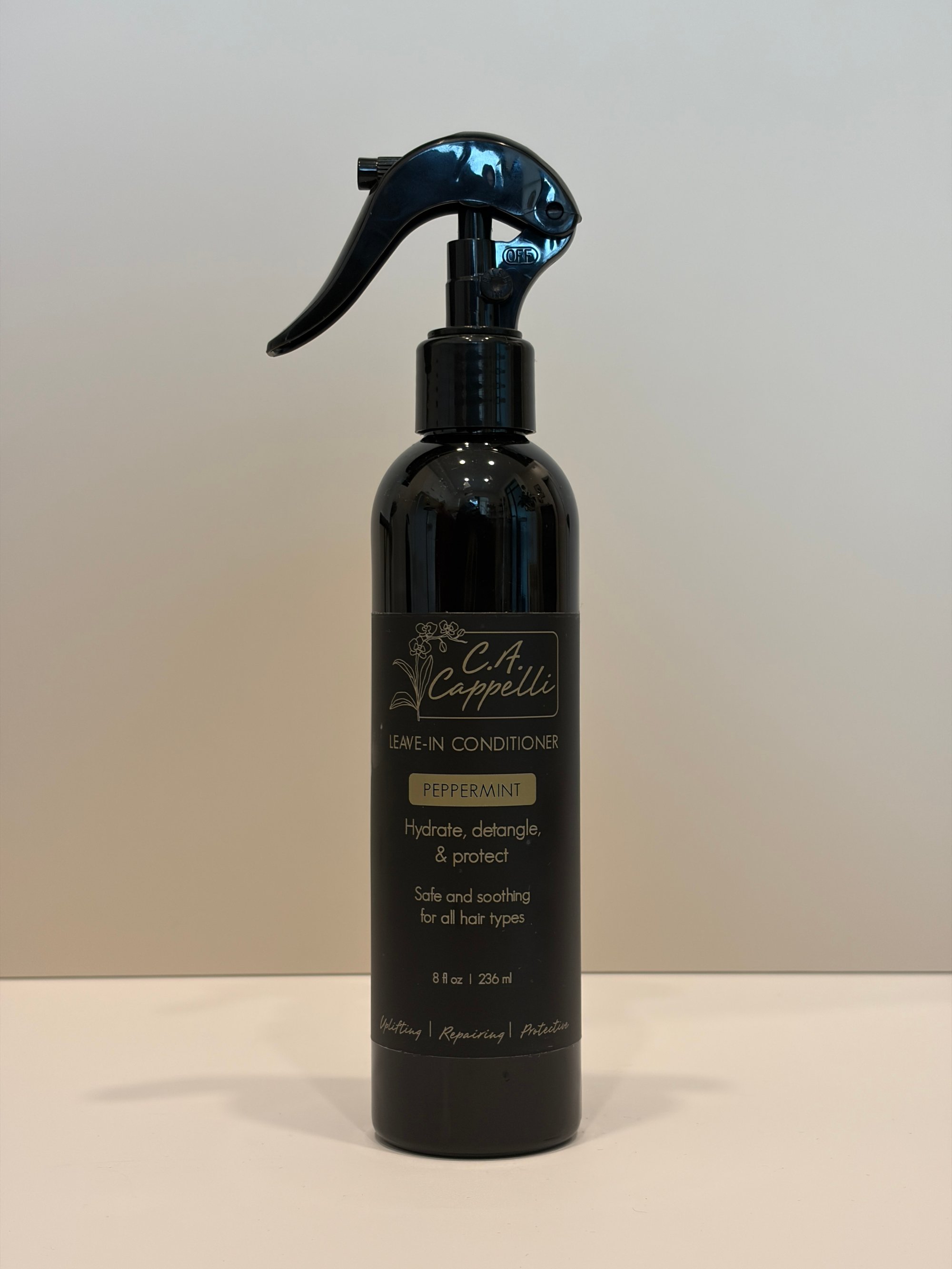 Bottled in an 8 oz PET/BPA free recyclable/reusable bottle with trigger pull spray nozzle.